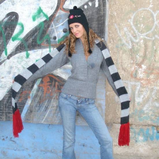 This is a woollen cardigan for ladies and women. It is hand-made with 50% alpaca wool and 50% acrylic material. The brown cardigan a belt strap embellished with orange, red and green flower ornaments.