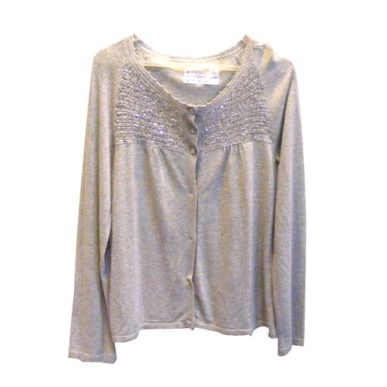 This is a ladies' cardigan with buttons. The materials used are 35% viscose, 20% nylon, 29% wool 8% cashmere and 8% angora. This makes the cardigan suitable for all seasons.