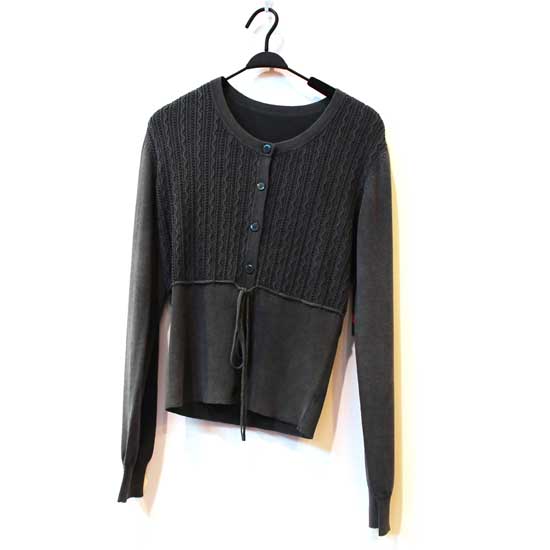 This attractive cardigan features a pair of long sleeves, a round neckline and a button-up closure. The cardigan boasts a drawstring waistband with a knot at the front. The pair of sleeves and the waist area showcase stonewashed effect.