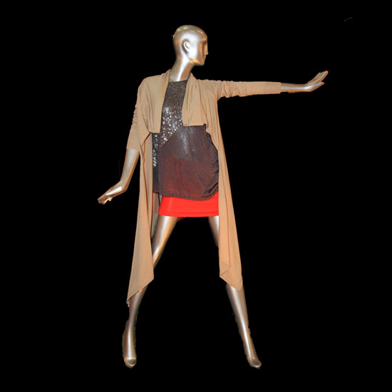 Featured is an edgy ladies' cardigan of a long length. Designed with a draped construction and an irregular shape, this cardigan looks trendy. This out of the ordinary cardigan makes a unique addition to your wardrobe.