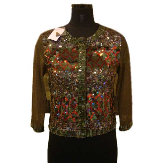 This ladies’ cardigan simply steals the spotlight with its glittery exterior. The brown cardigan is lavishly embellished with sequins in assorted colors over the bodice, collar, placket and hem. Made of polyamide, this round-neck cardigan promises soft texture and optimum wearing comfort.