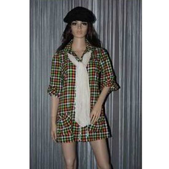 The ladies' dress features an above-knee design with a notched collar and a pair of 3/4 sleeves. The colorful checked patterns give this dress a sense of fashionable flair. This pretty dress makes a great choice for fashionable ladies.