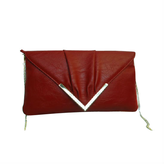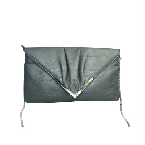 • Fashion ladies clutch bag with metal bar decor on flap, shoulder strap in chain.