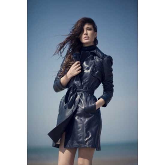 The ladies' coat flaunts a classic double-breasted front with a self-tie belt for a sophisticated charm. Styled with a notched collar and three-quarter sleeves, it is well tailored to conform to your slim and feminine figure. Look cool under the chill with this double-breasted trench coat.