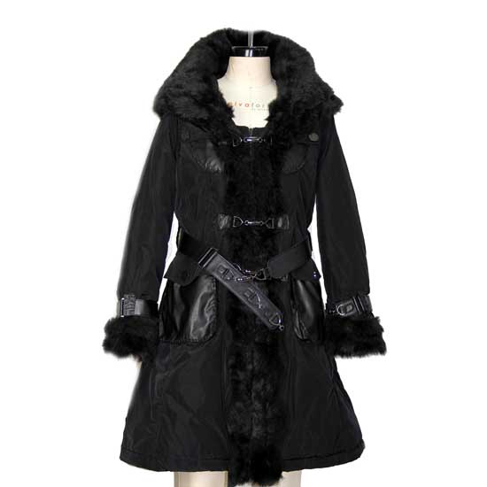 This ladies' coat in black is accented with furry designs at the collar, cuffs and placket for a luxurious touch. The adoption of different kinds of materials casts stylish elements to the look. This fashionable ladies’ coat is sure to make you stand out from the crowds.
