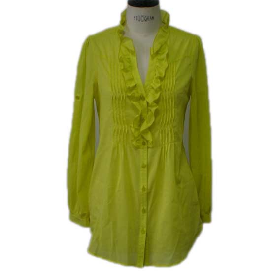 The casual ladies' blouse is made of cotton for a flattering fit and comfortable wear. The ruffled neckline coordinates with the smocked details in an enticing way. This ladies' cotton blouse makes a stylish addition to your wardrobe.