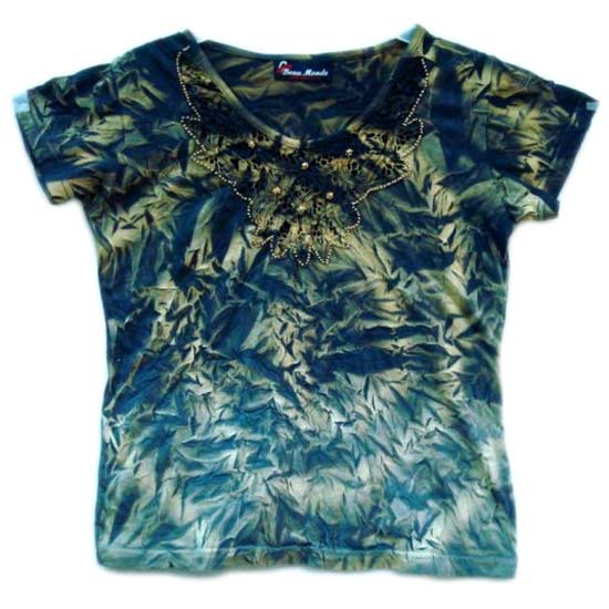 The ladies' blouse features a round neckline highlighted by hand-knitted decorations. The swirl tie-dyed patterns give this blouse a sense of uniqueness. This blouse makes a great item to spice up your fashion ensemble.