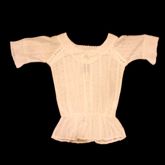 The ladies' blouse features a V-neckline with mid-length sleeves. The embroidered details and smocked hemline add a unique touch. This versatile blouse is an excellent basic top item.