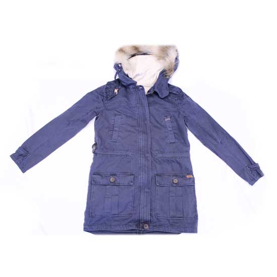 This navy coat for ladies features a hood with a fur detail for added warmth. It is designed with multiple pockets at the front for wearers’ convenience. This fashionable long cotton coat is an ideal choice for wintry days.