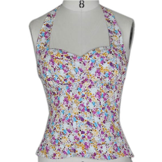 This ladies’ corset comes with a sweetheart front and a halter neck. Allover floral patterns lend gorgeous feminine touch. It pairs well with your favorite high-rise skirts or shorts for a cool style.