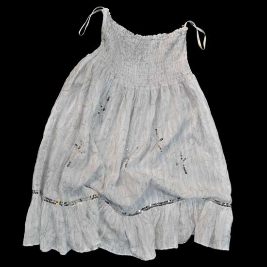 This gray dress features subtle floral patterns for a graceful look. The smocked bust shows off the alluring body shape of the wearer. The cotton dress is embellished with shiny sequins. Update your look with this stylish dress.
