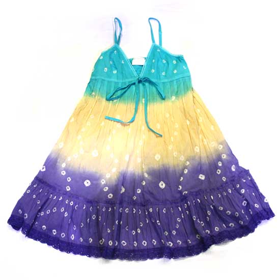This ladies' dress features three various colors, creating a sense of freshness. With self-tied strings in the front, the V-neck dress perfectly shows the attractive body shape of the wearer. Complete your summer closet with this spaghetti-strap dress.
