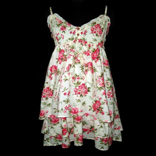 This ladies’ dress features allover floral printings offering gratifying feminine details. It comes with raised waistline and layered frills casting added glamor. Check out this lovable cotton dress for a brisk summer look.
