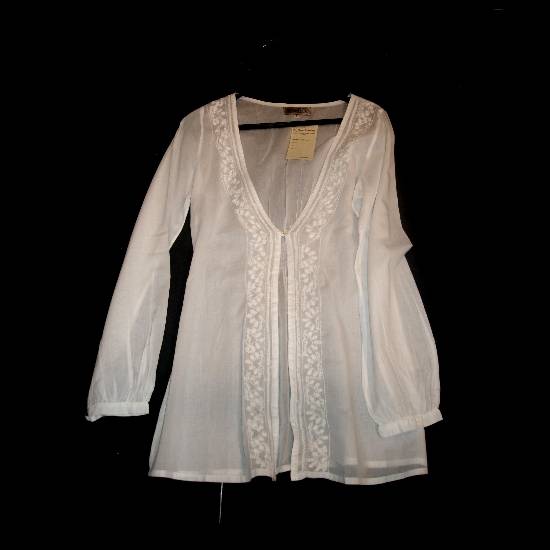 This ethnic-inspired kaftan features long, wide sleeves and is open on the front. It comes with a convenient single-button closure at the neckline. Delicate floral embroidery along the V-neckline and the hem adds a feminine detail. The light and sheer fabric makes it a perfect fashion piece for hot summer days.