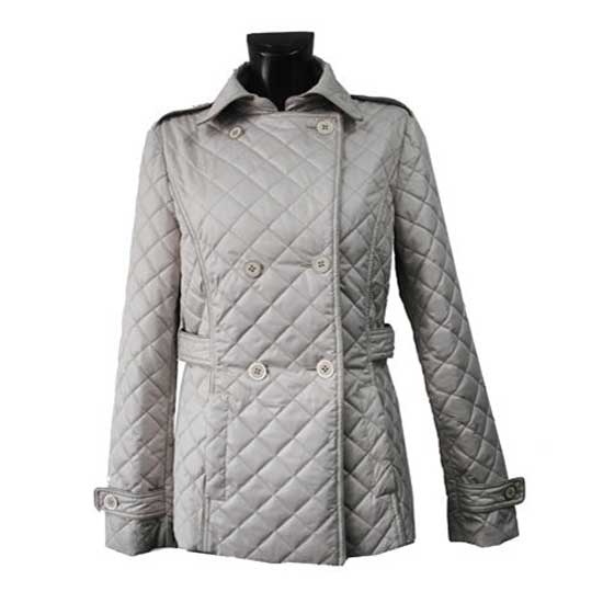 This light-colored ladies’ coat comes with quilted and padded designs for added warmth. It features double-breasted buttons, belts at the waist and the cuffs. This cozy cotton-padded coat is a must-have for winter days.