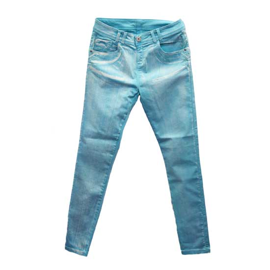 This pair of ladies’ long pants features a blue appearance with a unique wash effect. It is fabricated from 98% cotton and 2% elastic to ensure comfort and coziness. This pair of stylish long pants is a great addition to ladies’ wardrobe.