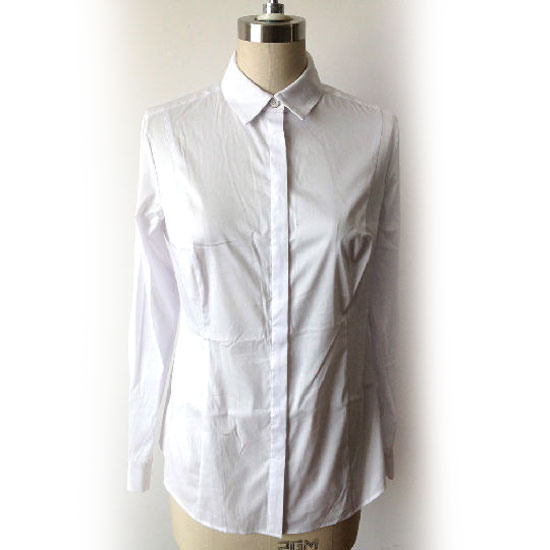 This is a ladies' shirt in allover white with a classic design. The full cotton fabric gives you enhanced comfort. This shirt is a must-have addition to your wardrobe.