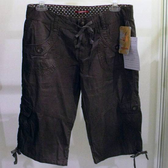 Featured is a pair of ladies' shorts in knee-length. It comes with patch pockets on both sides. The drawstrings at the waist and on the cuffs allow for an adjustable fit. These stylish shorts are the perfect item to your wardrobe in the summer.