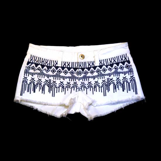 This pair of white ladies shorts features embroidered decorations on the surface. The finely manufactured cotton shorts delivers satisfying wearing comfort. It is a great addition to your summer wardrobe.