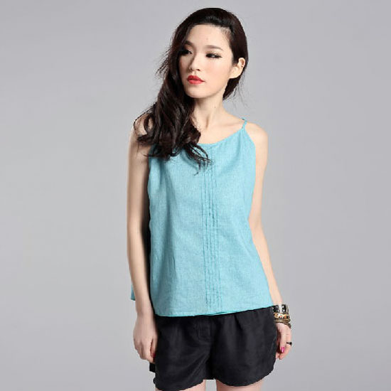 This loose-fitting vest comes in a refreshing light blue color with pintuck details at the front. With cotton lining, this vest is comfortable and airy. This cotton vest is a versatile piece to match with patterned woven shorts for a stylish summer look.