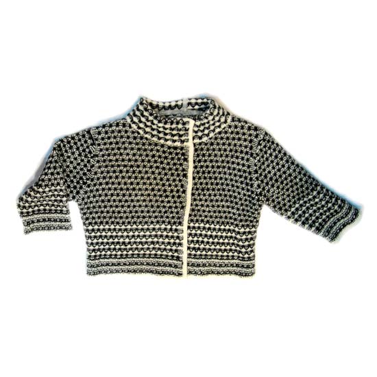This cropped jacket is designed for the ladies. The cropped jacket highlights delicate black and white patterns for a touch of style. Show off your feminine waistline with this classy cropped jacket.