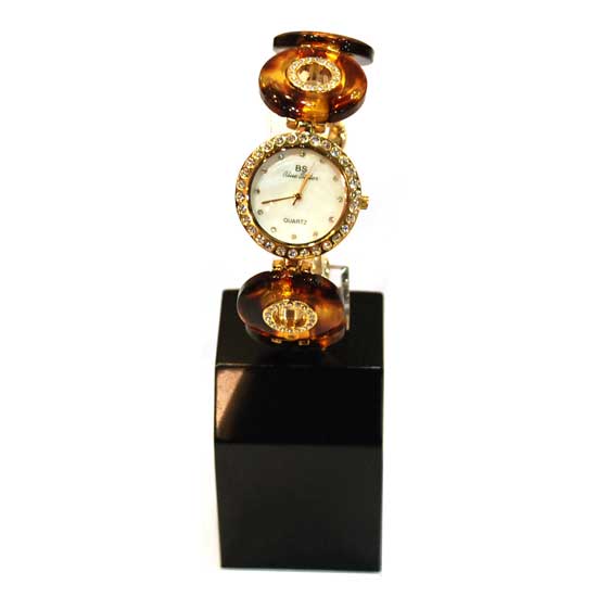 This beautiful ladies' watch appears like a bracelet. The alloy band is chained up by lustrous round stones. The round dial is embedded with dazzling stones as the hour markings, while the bezel is also framed with a cluster of crystals to shine with enchanting radiance.