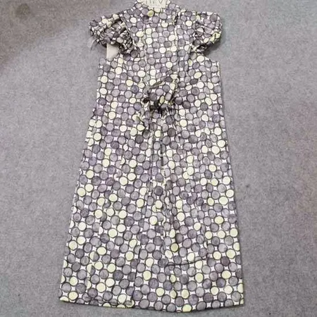 This sassy dress features a stand collar and puffed cap sleeves. The distinctive knot on the front creates an adorable look . It is a wonderful piece for casual or semi-formal occasions.