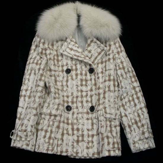 The ladies' coat bestows a timeless double-breasted design. The allover gridded patterns blend beautifully with the foliage graphics. Show your chic style with this stunning coat.