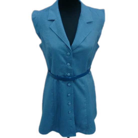 The ladies' dress has a V-neck and sleeveless design. The belt accentuates the lady's figure. This dress makes an exceptional piece to add to your wardrobe.
