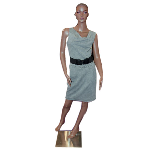 The ladies' dress is weaved with a blend of 95% nylon and 5% spandex. It is characterized by a brief and elegant solid-colored design. This piece also goes with a matching black belt.