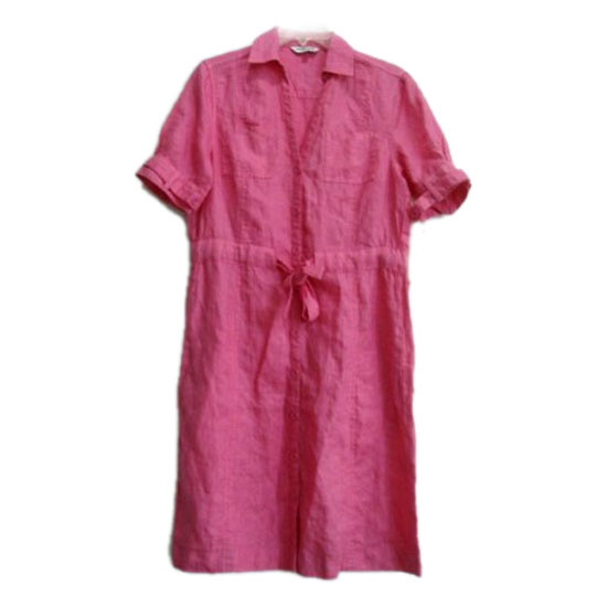Available is a ladies' dress which features a plain red design. Its waist can be fastened with a waistband. The pair of short-sleeves maintains coolness and comfort during wear.