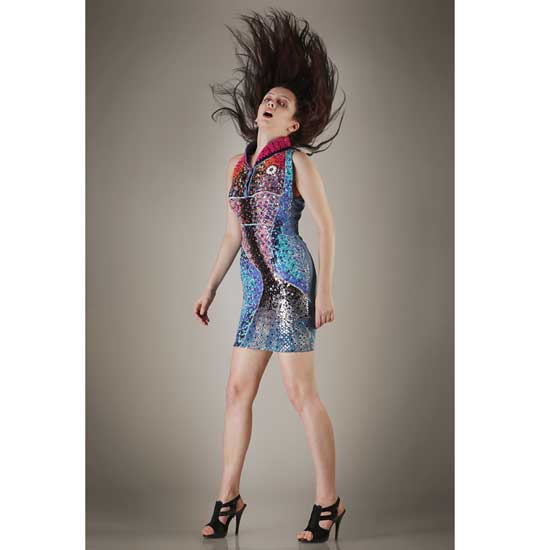 This stunning dress features a classic silhouette to show ladies' curves. The 100% silk dress is accented with colorful sequins for a shiny appearance. It is perfect to show your individuality with a bold fashion statement.