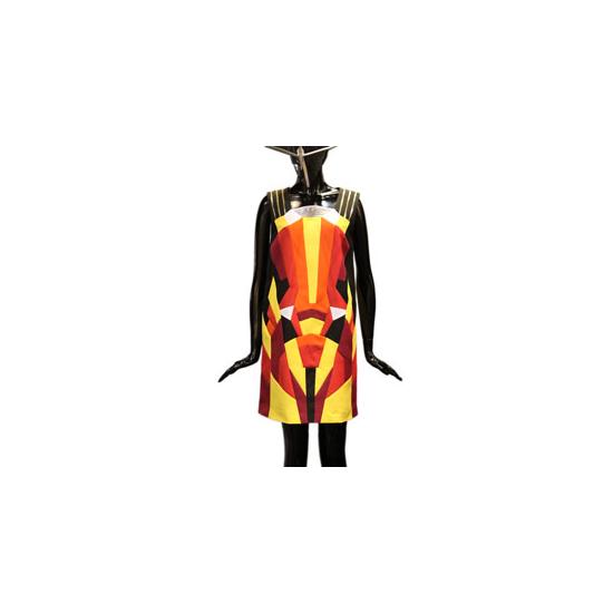 The ladies' dress arrests attention with its colorful appearance. It features a pair of thick straps with brilliant stripes. The sleeveless design ensures coolness and lasting comfort.