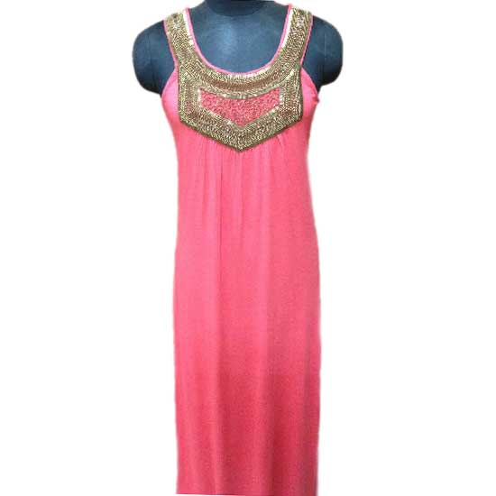 This is a sleeveless one piece dress that comes with a round neckline. This ladies’ dress is designed in watermelon red for an eye-catching look. The dazzling embellishments are added on the front for an exquisite touch.