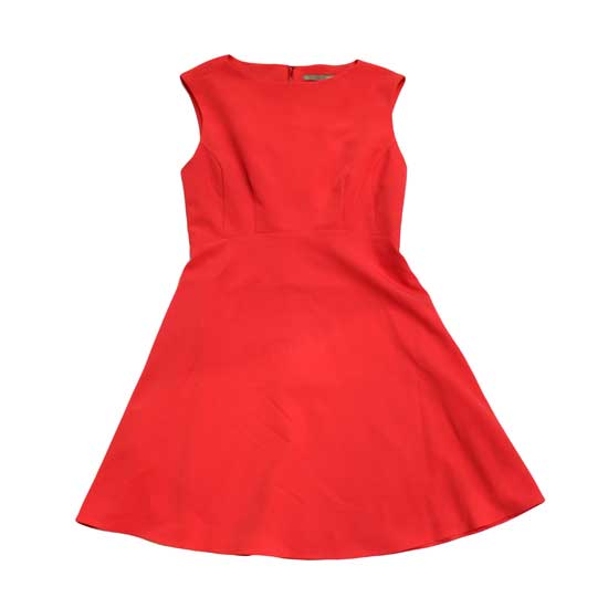 This is a ladies dress with a sleeveless design in allover wine red. It is made of full polyester for enhanced durability. The slim-fit cutting showcases your alluring silhouette perfectly.