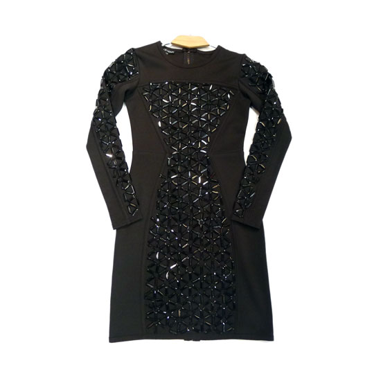 This is a ladies' one-piece dress that is designed with a classic round neckline and long sleeves. The allover shimmering metallic ornaments add a touch of style to the whole piece. This ladies' dress is finished with a slim-fit bodice.