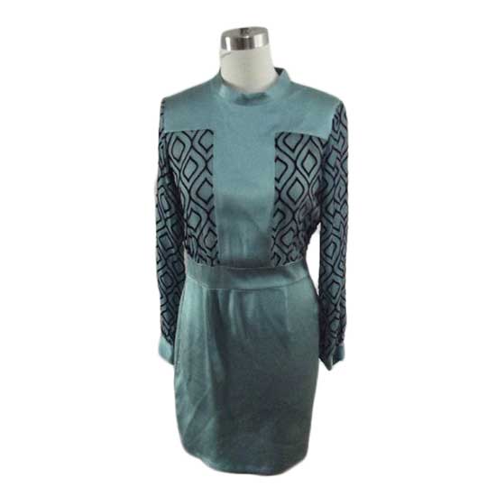 This is a ladies' dress that comes with long sleeves. Made of silk, the dress is smooth and soft to touch. This elegant ladies' dress is decorated with a simplistic motif for a fashionable touch.