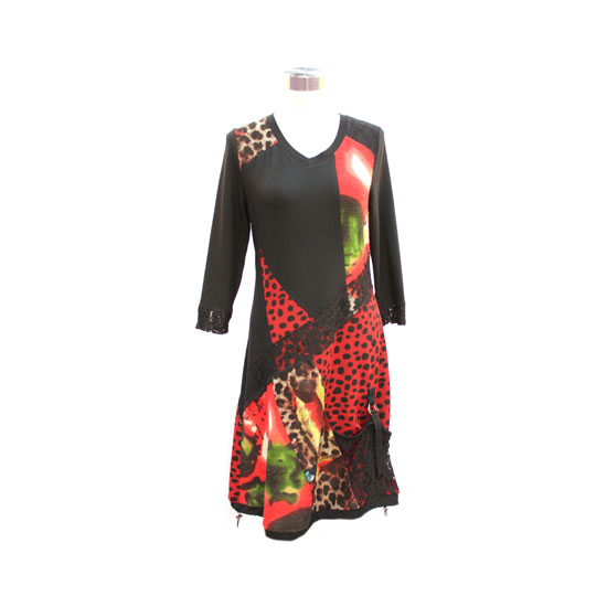 This ladies’ dress features long sleeves and a V-neckline. It is made of 100% viscose for a comfortable touch. This ladies’ viscose dress is designed with delicate prints in multiple colors for an eye-catching look.