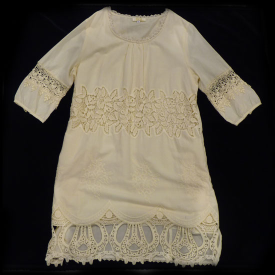 This round collar ladies' dress features a light yellow finish with floral embroidery patterns. The dress comes with mid-length sleeves to keep you warm. The dress is comfortable to wear in summer and autumn.