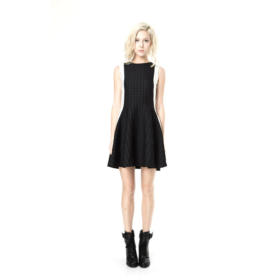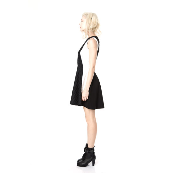 This is a sleeveless dress with a chic and fashionable look. It comes in black with white accents and exquisite checked patterns. The quality fabric gives you enhanced comfort.