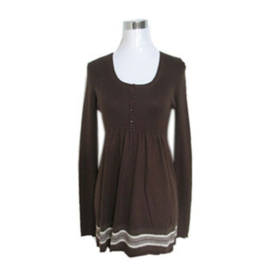 This long-sleeved ladies' dress features a brown finish. The hem is adorned with white stripes. It brings out your unique personality without sacrificing your beauty.