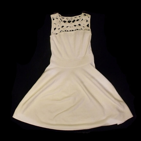 This is a ladies' dress featuring an all-white finish. It is accented with a hollow zigzag pattern. The dress is a must-have item for girls and ladies.