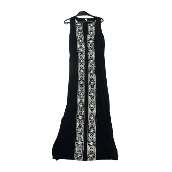 This stylish dress comes with a sleeveless design and a round neckline. It is made of top-grade rayon for a comfortable touch. This rayon dress with delicate patterns on the front is a great choice for fashionable ladies.