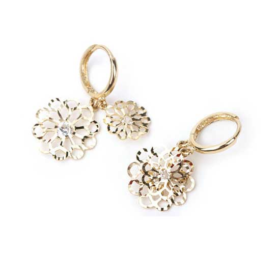 These earrings catch ladies' attention instantly with its dainty and charming design. Each piece features two hollow flower-shaped embellishments with sparkling stones. This pair of refined earrings surely is a wonderful addition to your fashionable jewelry collection.