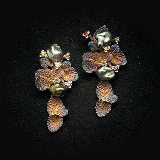 This pair of earrings features leaves. The outstanding craftsmanship is fully displayed by the great details shown on the silver-made leaves. Four delicate pearls are used to embellish the earrings, with two on each. This exquisite pair of earrings is suitable to wear with autumn outfits.