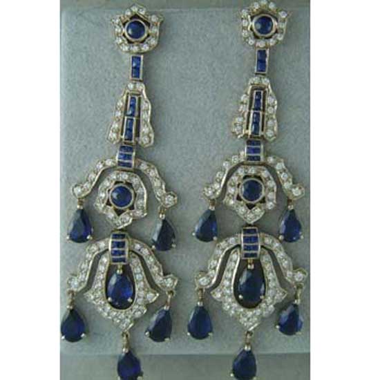 The ladies' earrings are made of 18K gold for a luxurious touch. Their pendants are embellished with glamorous sapphires and diamonds. The earrings make ideal accessories for any grand occasions.
