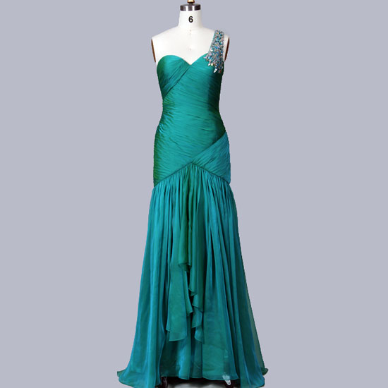 This is a ladies’ evening dress that features an elegant one-shoulder design. It is made of top-quality material for a soft and natural texture. The allover pleated details accent this fashionable dress.