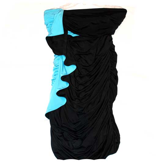 The ladies' evening gown flaunts a unique construction in blue and black. The pleated details and bubble skirt add a unique touch. This ladies' evening gown is a stunning piece to make you stand out from the crowd in parties.