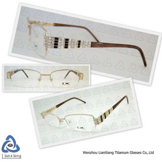 Available are eyeglasses elegantly designed for the fashionable ladies. The brown temples are adorned with Preciosa crystals imported from Czech. These sparkling, feminine eyeglasses are great to accessorize a lady’s daily look.