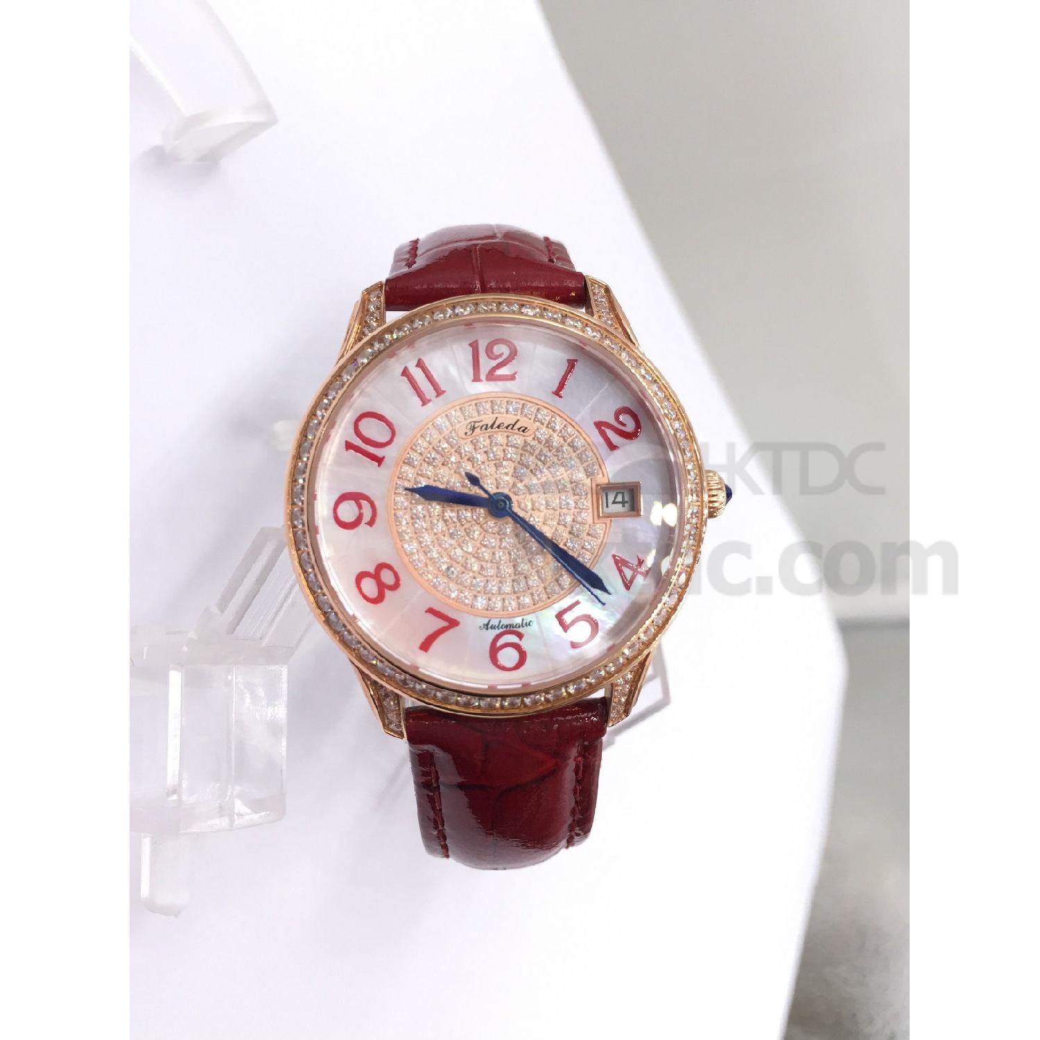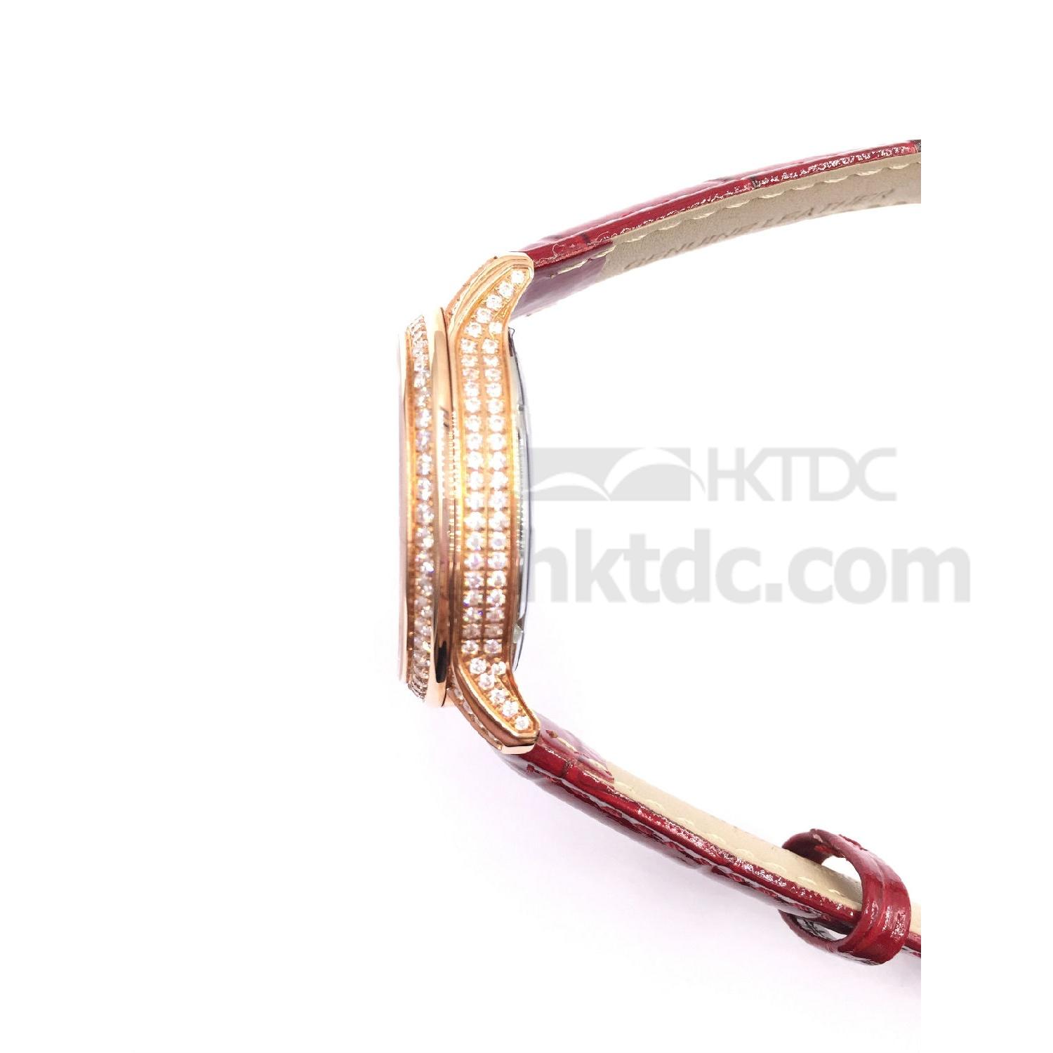 • Red ice croco genuine leather strap, double push butterfly buckle